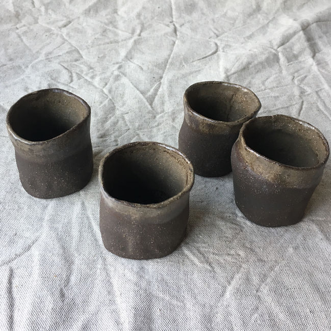 Art de la table, plusieurs séries de bols, de tasses et de saladier, façonné à la main. Des couleurs naturels et de la terre brute contraste avec les émaux brillants.